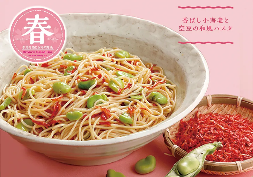 春キャベツ、たけのこ、そら豆など春に旬を迎える野菜を使用した、ブロンコビリー自慢のオリジナルサラダをお楽しみください。